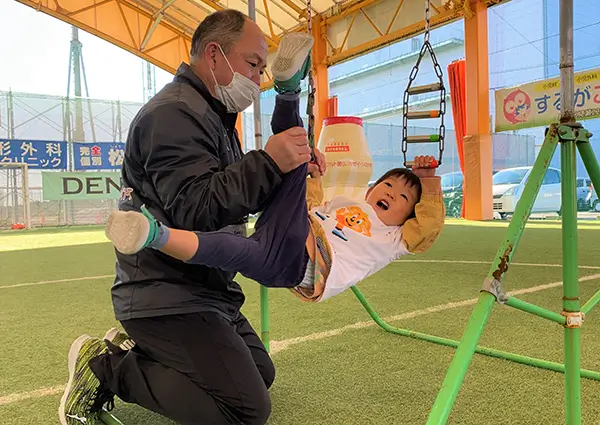 エスコートキッズを体験したヤクルトレディのお子さまは、自分よりも遥かに大きい選手に大興奮の様子でした。