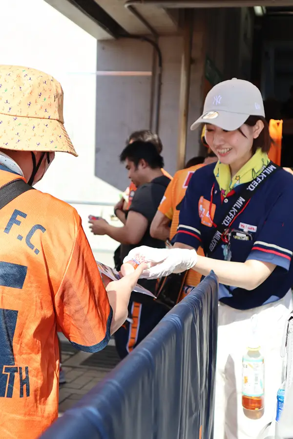 70周年オリジナルコラボTシャツをお揃いで着て、会場はオレンジ一色に。