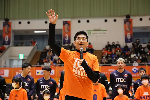 静岡vs愛媛のオレンジダービーが静岡市中央体育館で行われ、当社からもヤクルトレディとご家族、社員を合わせ総勢250名の応援団が集結しました。