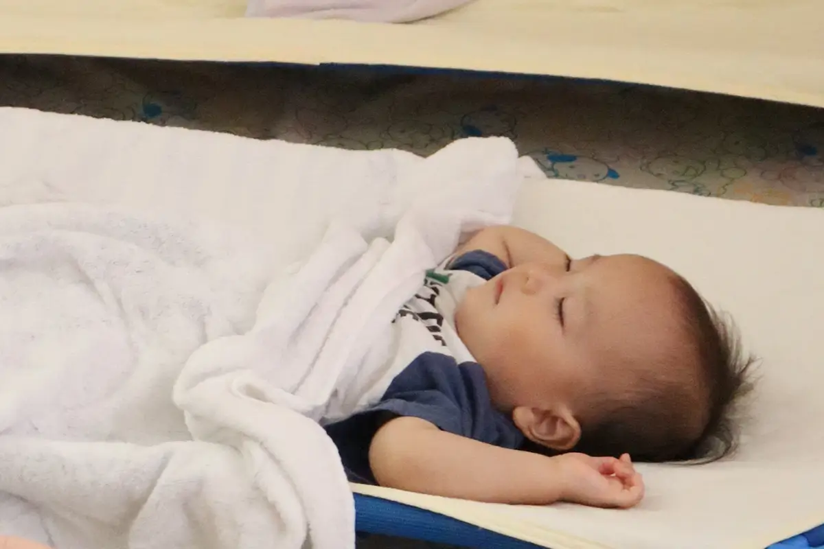 子どもたちが快適な環境で入眠できるよう保育者が一人ひとりに寄り添います。